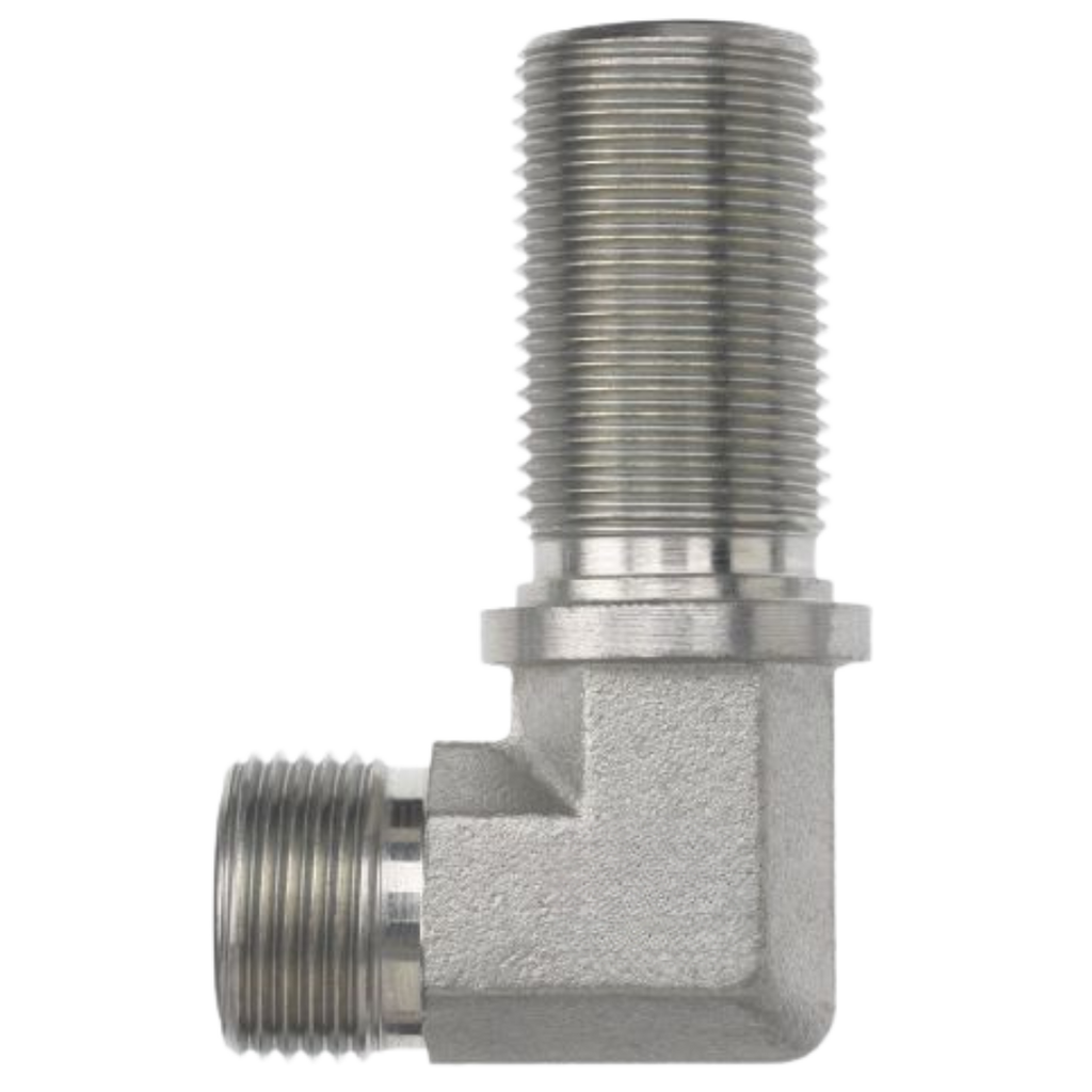 The Series FS2701 90-Degree Male ORFS (O-Ring Face Seal) x Male ORFS bulkhead adapters are high-quality carbon steel fittings designed to provide secure, leak-free connections in hydraulic systems. Featuring a 90-degree angle, these adapters are ideal for routing hoses and pipes efficiently in confined spaces. Both ends are equipped with male ORFS connections, which ensure a reliable, leak-tight seal by compressing an O-ring against a flat face. These adapters are forged from high-pressure steel and treated with carbon zinc trivalent for enhanced corrosion resistance. Compliant with SAE J5143 standards, the Series FS2701 offers exceptional strength and long-lasting performance, making them suitable for various industrial applications requiring secure and durable connections.