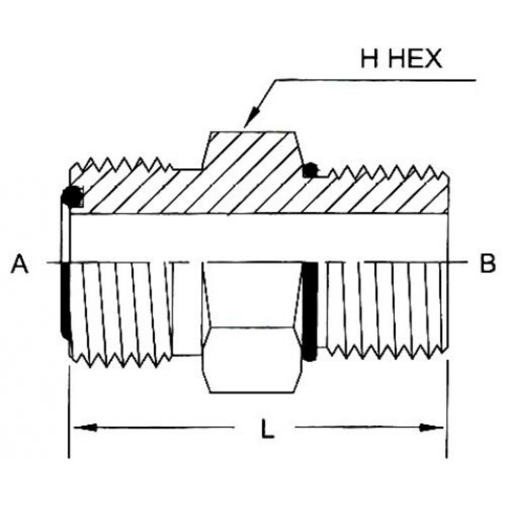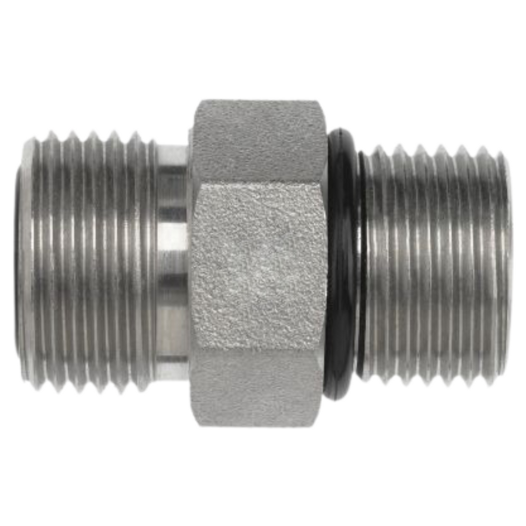 The Series FS6400 Straight Male ORFS x Male ORB hydraulic adapters, made of carbon steel, combine the reliability of two high-performance sealing technologies: ORB (SAE Straight Thread O-ring Boss) and ORFS (O-ring Face Seal). ORB fittings, commonly used in medium and high-pressure hydraulic systems, feature a male connection with a straight UNF thread and an O-ring, ensuring a leak-tight seal when the O-ring is compressed into the chamfer of the female connection. The ORFS side incorporates an O-ring seated in a groove at the face of the fitting, providing an elastomeric seal between the male and female connections. This type of seal is created when the O-ring is compressed between the O-ring face and the flat face of the mating ORFS fitting or tube. Both ORB and ORFS fittings are widely used for their leak prevention properties, as recommended by the NFPA, and are commonly manufactured in carbon, nickel-plated carbon, or stainless steel with Buna-N or Viton O-rings for added durability in demanding applications.