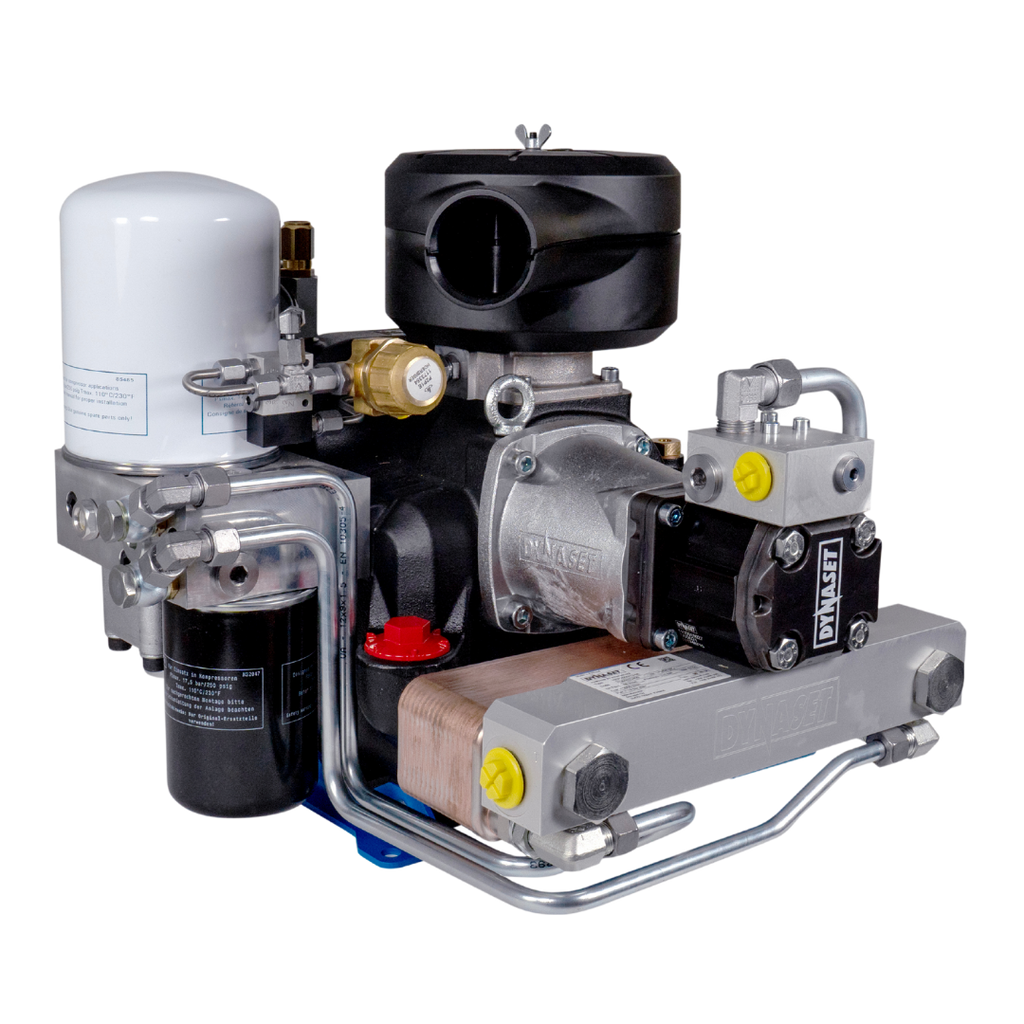 The Dynaset HKR Hydraulic Screw Compressor converts hydraulic power from mobile machines, vehicles, or vessels into compressed air, offering a compact and highly durable solution for continuous 24/7 use. Perfect for applications in mining, drilling, agriculture, construction, and service vehicles, this compressor provides airflow from 500 to 11,000 liters per minute and air pressures up to 13 bar. It integrates seamlessly with hydraulic systems, eliminating the need for a secondary diesel engine and reducing maintenance requirements. With features such as low operating noise, robust construction, and efficient cooling, it ensures reliable performance while minimizing environmental impact and saving time, space, and resources.
