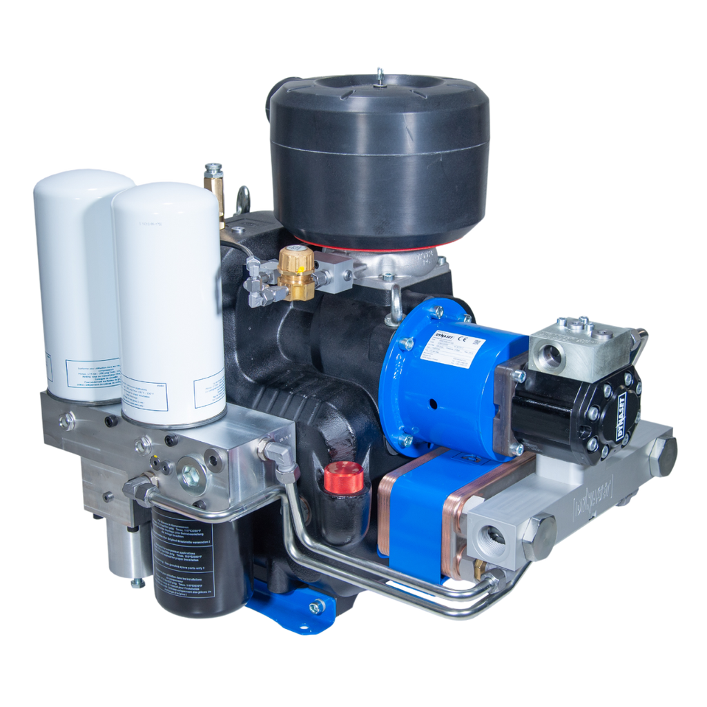 The Dynaset HKR Hydraulic Screw Compressor converts hydraulic power from mobile machines, vehicles, or vessels into compressed air, offering a compact and highly durable solution for continuous 24/7 use. Perfect for applications in mining, drilling, agriculture, construction, and service vehicles, this compressor provides airflow from 500 to 11,000 liters per minute and air pressures up to 13 bar. It integrates seamlessly with hydraulic systems, eliminating the need for a secondary diesel engine and reducing maintenance requirements. With features such as low operating noise, robust construction, and efficient cooling, it ensures reliable performance while minimizing environmental impact and saving time, space, and resources.