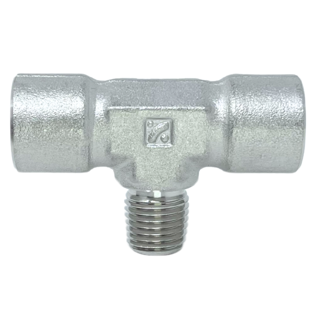 The Series IBT Stainless Branch Tee, Female NPT x Female NPT x Male NPT Adapters, made from high-quality 316 stainless steel, are essential components for creating secure, leak-free connections in fluid and gas transfer systems. These adapters feature two female NPT ports and one male NPT port, allowing for branching or splitting of piping systems while maintaining a reliable seal at each connection point. Designed for use in industrial and instrumentation systems, these branch tees offer durability, corrosion resistance, and optimal performance, making them ideal for high-pressure and high-performance applications in industries such as oil and gas, chemical processing, and instrumentation. Their robust construction ensures long-lasting, efficient flow distribution across various fluid power systems.