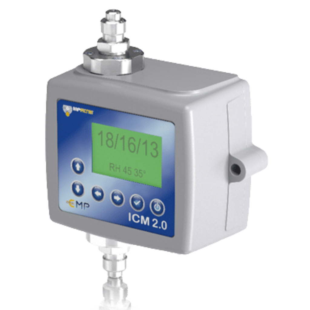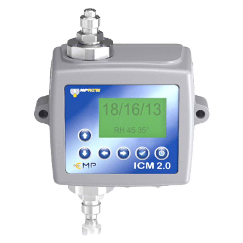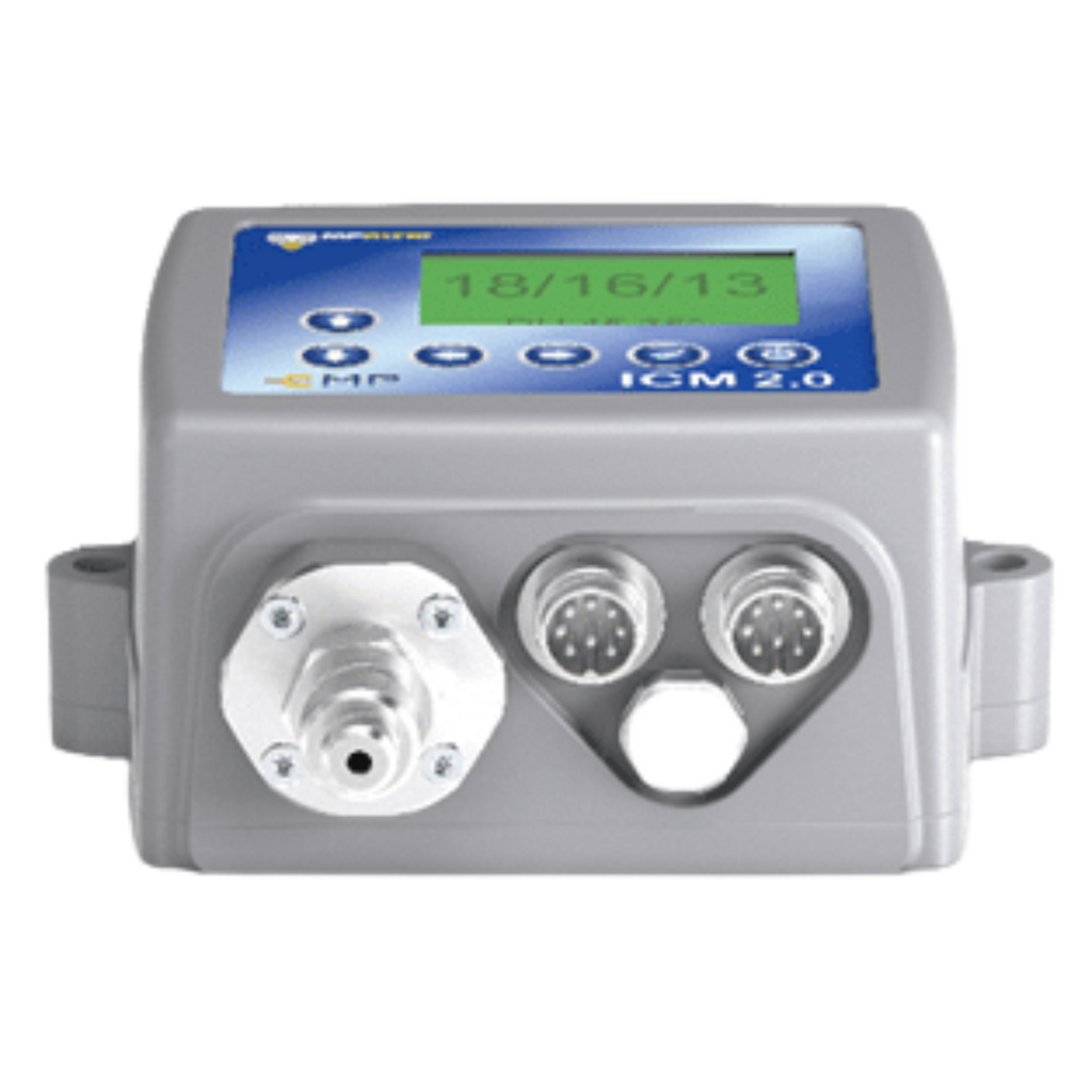 Our MP Filtri ICM 2.0 Inline Contamination Monitors provide real-time, automatic measurement of particulate contamination, moisture, and temperature levels in hydraulic fluids. Designed for direct installation on hydraulic systems, these compact, rugged analyzers continuously monitor fluid condition according to international standards such as ISO 4406, NAS 1638, and AS 4059. Featuring an easy-to-read multicolor LCD or LED display, built-in data logging for up to 4,000 test results, and connectivity via RS485, Modbus, CANbus, or 4–20mA outputs, the ICM 2.0 offers powerful diagnostic insight for proactive maintenance. With its robust die-cast aluminum construction, IP65/67 protection, and compatibility with CMP View software, this contamination monitor helps identify issues early, reduce downtime, and extend equipment life.