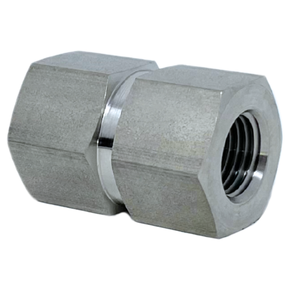 The Series IHRC Straight Female NPT x Female NPT Hex Reducing Coupling Adapters, crafted from high-quality 316 stainless steel, are designed to provide secure and leak-proof connections in instrumentation and fluid power systems. These adapters feature female NPT threads on both ends, with one side having a reduced size to accommodate different pipe diameters. The hexagonal shape of the coupling allows for easy installation and removal using a wrench, while the tapered threads ensure a reliable metal-to-metal seal that prevents leaks and maintains pressure integrity. These versatile adapters are ideal for applications where size adjustments between pipes or fittings are needed, making them essential for industries such as oil and gas, chemical processing, and fluid handling.