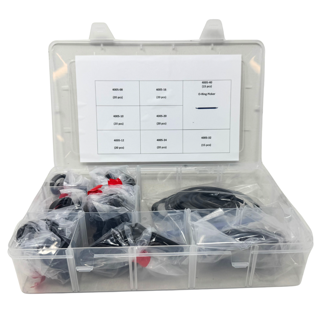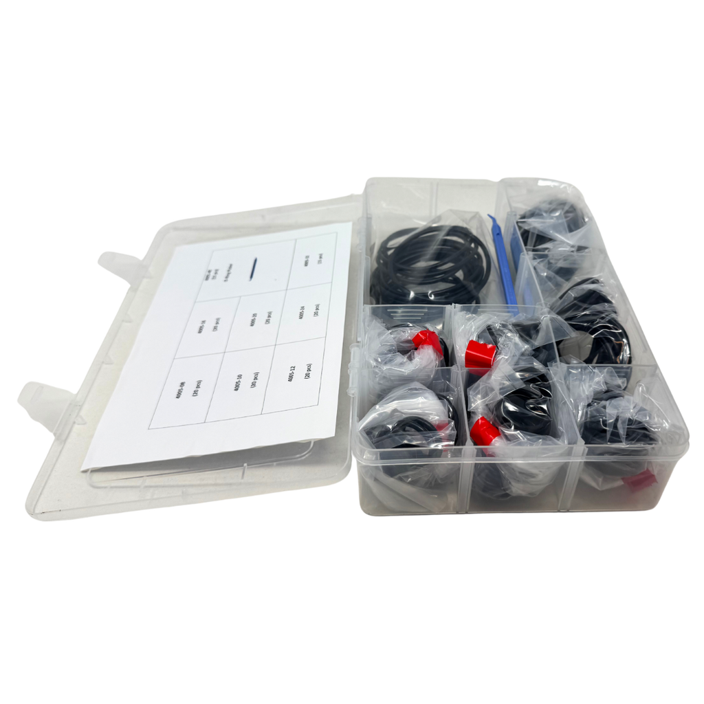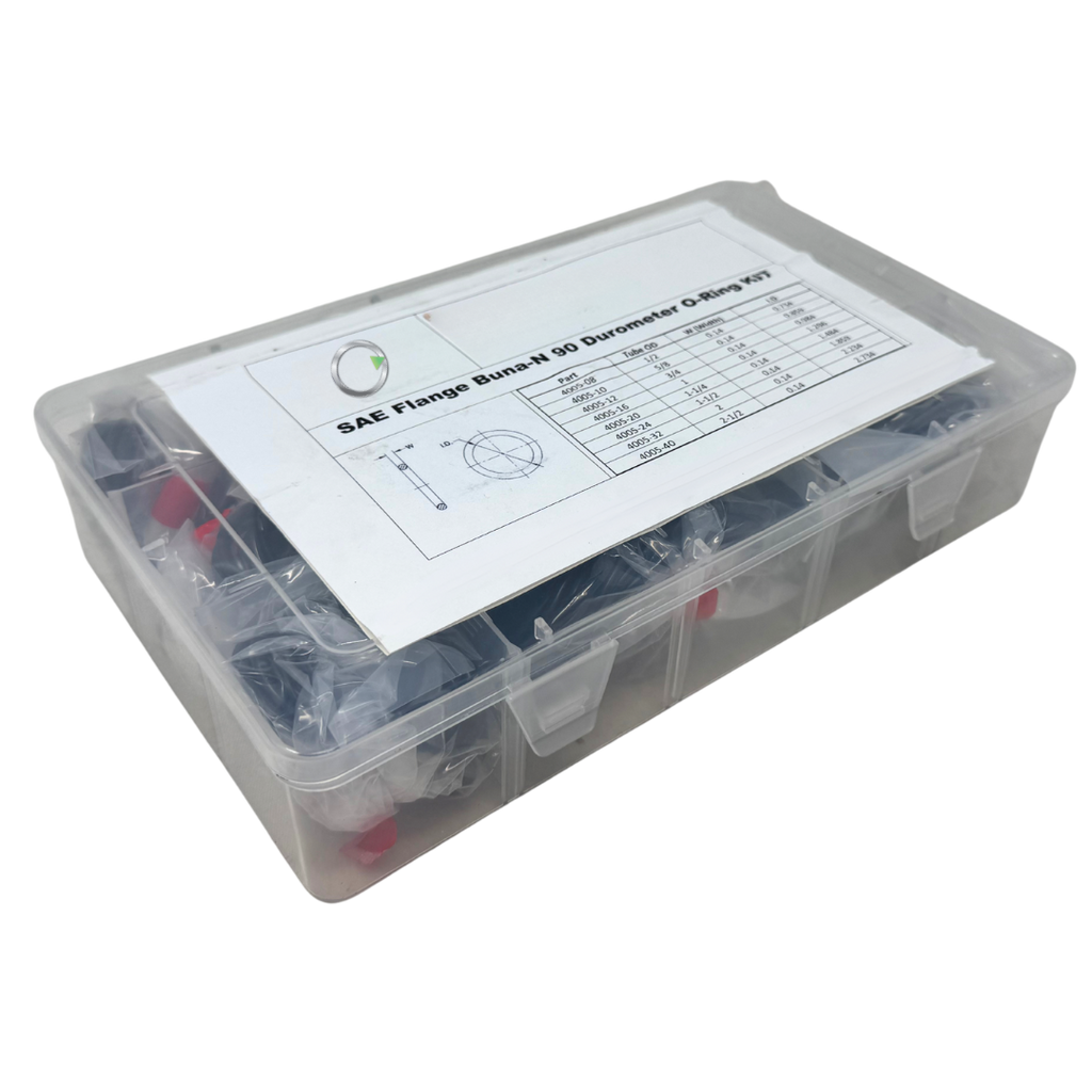 Our OneHydraulics SAE Flange (Code 61 & Code 62) Buna-N 90-Durometer O-Ring Seal Kit is a premium, ready-to-use solution for sealing SAE flange fittings and preventing leaks in high-pressure hydraulic systems. This comprehensive kit includes the most popular O-ring sizes for SAE flanges ranging from 1/2" to 2.5", ensuring a precise and reliable fit for maintenance or repair. Each O-ring is made from durable Buna-N material with a 90-durometer hardness, providing excellent resistance to oil, pressure, and hydraulic fluids. Lightweight, organized, and portable, this kit is perfect for keeping in your shop or service truck, giving you quick access to the right seal whenever you need it.