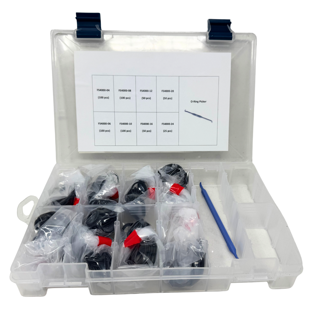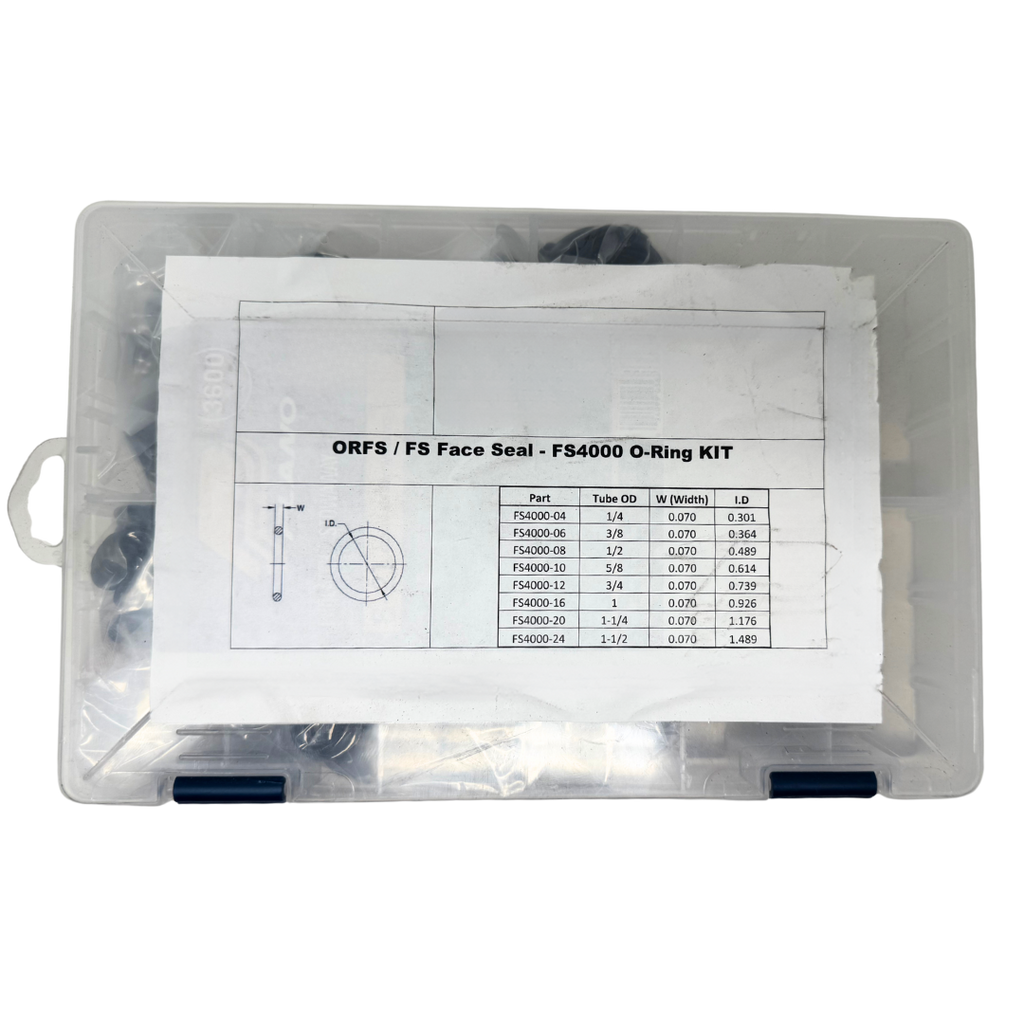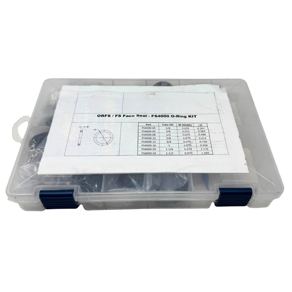 Our OneHydraulics O-Ring Face Seal (ORFS) Seal Kit is a convenient, all-in-one solution for replacing and maintaining O-rings on ORFS hydraulic fittings. This professional-grade kit includes the most common seal sizes for ORFS adapters ranging from 1/4" to 1.5", ensuring a precise fit and reliable, leak-free performance. Each O-ring is engineered for durability and resistance to hydraulic fluids, helping maintain system integrity under high pressure. Lightweight, organized, and portable, this kit is perfect for keeping in your shop or service truck, giving you quick access to the right ORFS seals whenever maintenance or repair work is needed.