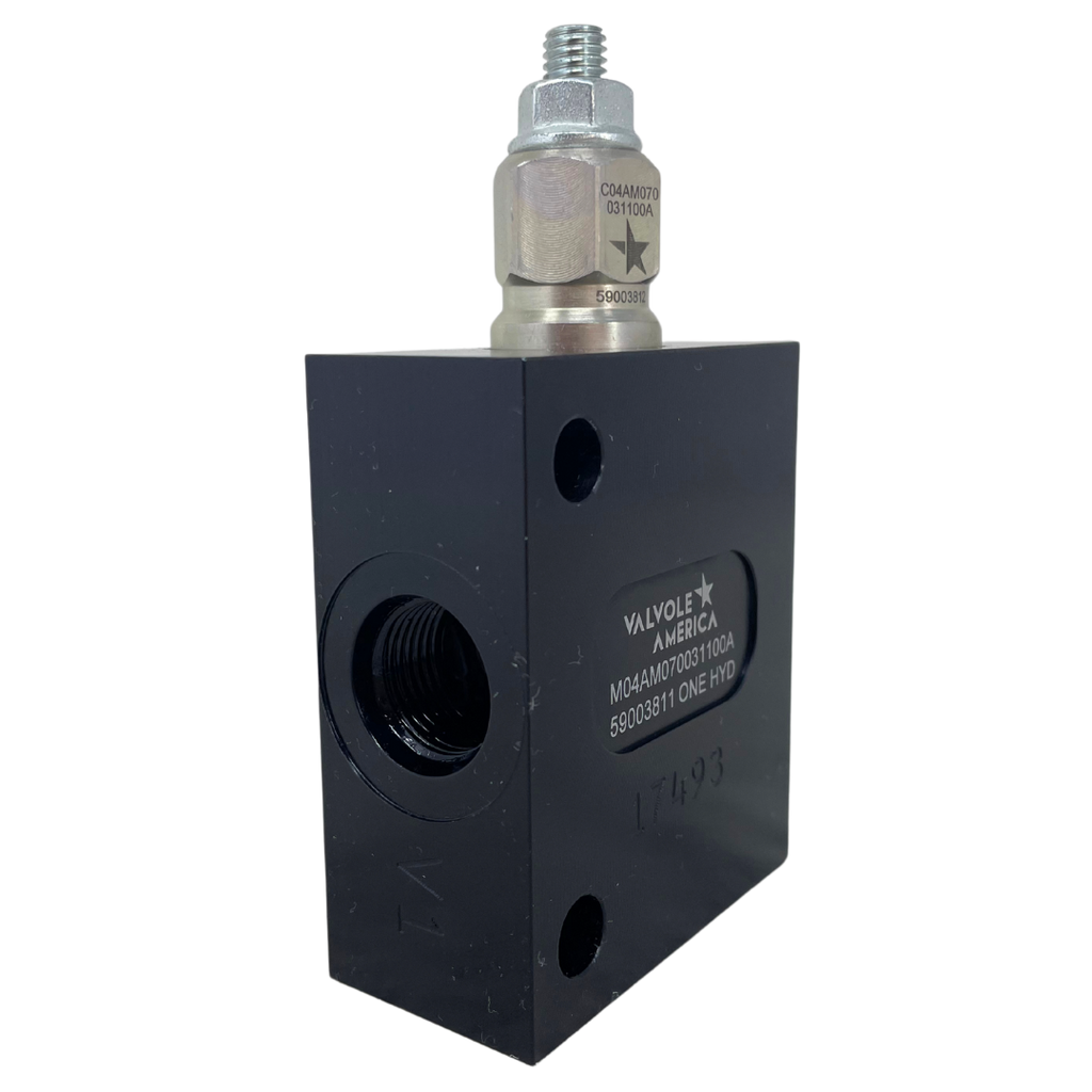 Single T11A counterbalance assembly, 3:1 pilot ratio, set 70 bar (1000 PSI), SAE-8 port, anodized aluminum
