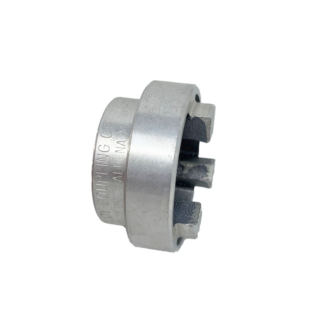 Magnaloy is the original lightweight, heavy-duty flexible drive coupling. Light weight magnesium construction makes Magnaloy couplings 76 percent lighter than cast iron and 36 percent lighter than aluminum units... and theyÕre stronger than either. The benefits are many... Reduced loads on bearings, shafts and pumps, for longer component life. Easier handling and installation. Rust proof and corrosion resistant. Magnaloys close machining tolerances (TIR of .002Ó) assures vibration-free operation and easy, accurate alignment without need for special tools. Solid magnesium alloy permanent mold castings are heat treated and offer the highest strength-to-weight ratio available. The Premium Line of Magnaloy Couplings comes standard with a single set-screw over the keyway. Optional Double Set-Screws are available at either 45 degree or 90 degree to the keyway. Double set-screws help improve shaft gripping forces by increasing the hoop-stresses generated from tightening a single set-screw. Double set-screws at 45 degrees will produce greater forces than double set-screws at 90 degrees. Either are available upon request by specifying DSS45 or DSS90 following the hub part number, for example M30011210DSS45. Magnaloys Clamp feature is also availble with bored and keyed hubs, specify C following the hub part number, for example M30011210C.
