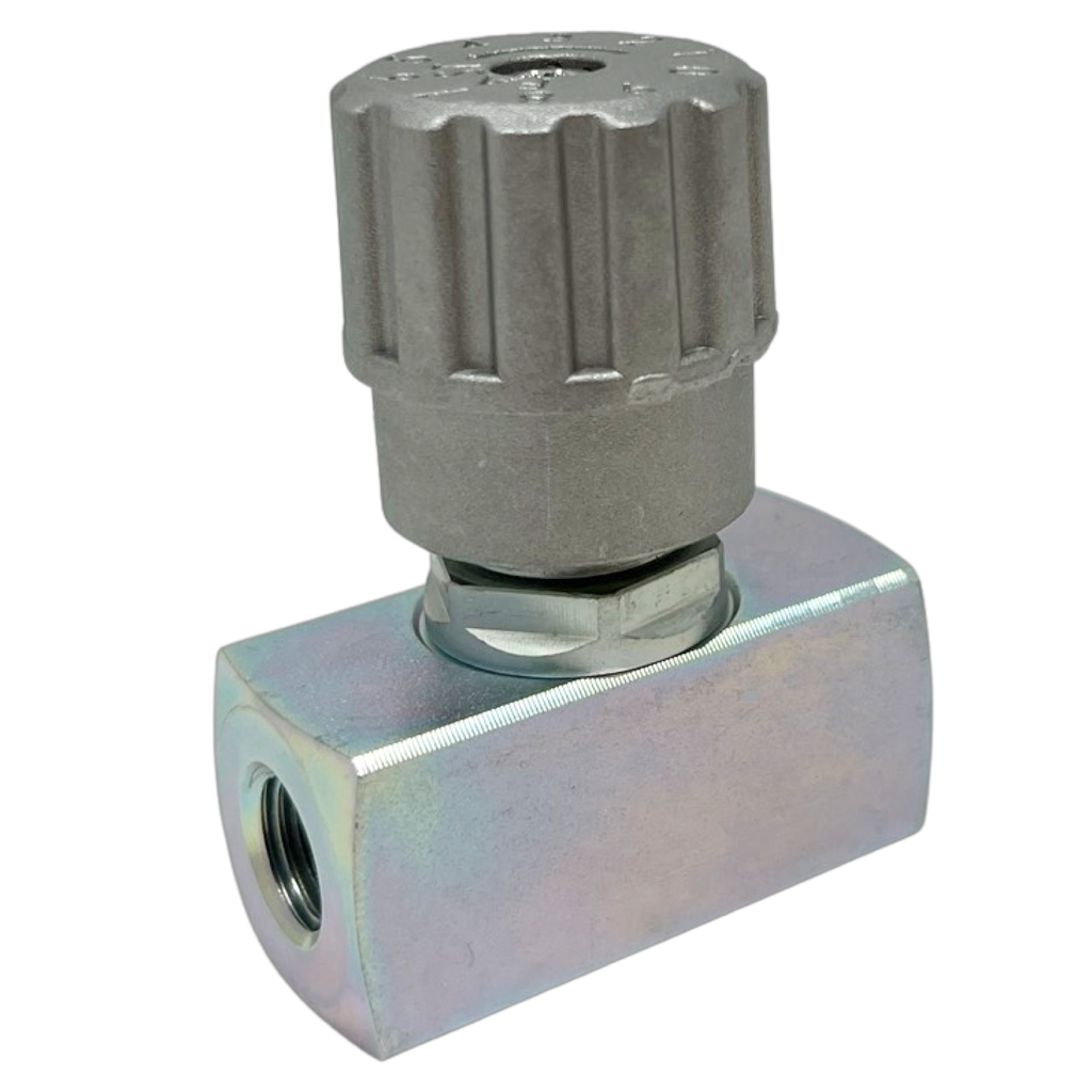 The Anchor Needle valves have a graduated knob and spindle for accurate flow control, and a set screw allows this valve to be locked into position. These valves are carbon steel with zinc chromate plating, and are RoHS Compliant. They come with Buna seals, and PTFE Stem packing. These Anchor Flow Control valves are for control of flow only, and are not to be used as isolation or shut off valves.