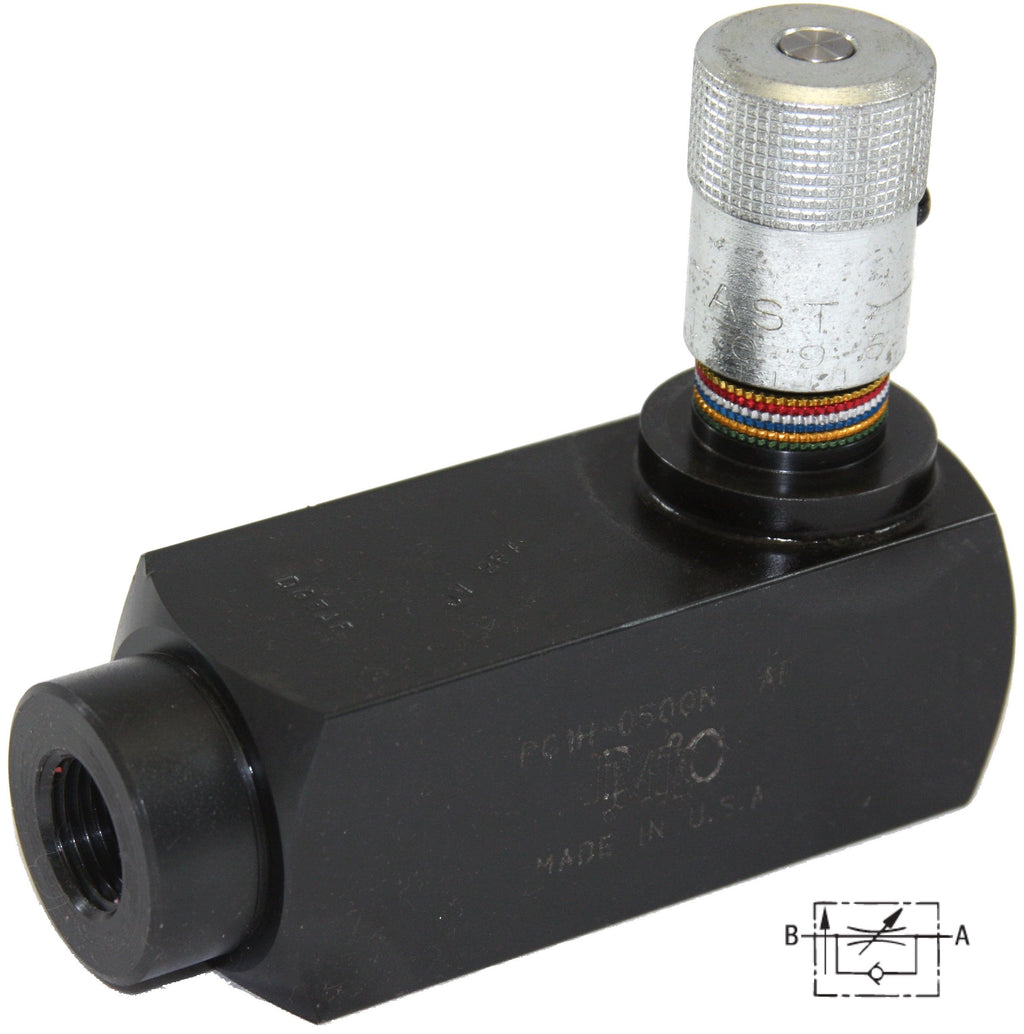 The DMIC PC2H is a bidirectional, pressure compensated, metered flow control. This valve is used to maintain bidirectional flow regulated within 5% of the user setting upon inlet and outlet pressure fluctuation. The ChromaFlow color-coded design allows the user to see visually how the flow control is set, facilitates calibration, system documentation, and restoration of correct settings if required. This valve comes with a set screw to prevent tampering.