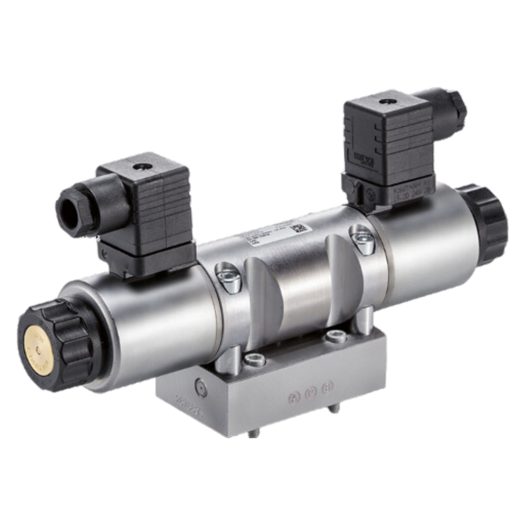 Explore the efficiency and reliability of Hawe ROLV Hydraulic Directional Seated Poppet Valves, designed to precisely control hydraulic flow in various applications including machine tools (cutting & non-cutting), clamping tools, punching tools, fixtures, testing machinery and wind turbines. Available as 3/2, 4/2, or 4/3-way directional seated valves, these valves ensure seamless movement of actuators while offering zero leakage. With a dirt-resistant design for enhanced reliability, they feature interchangeable solenoids for easy maintenance and greater flexibility. Ideal for machine tools, clamping tools, testing machinery, and wind turbines, these valves boast a zinc-coated steel body for durability and can withstand pressures up to 400 bar (5800 psi) with a flow rate of up to 25 lpm (6.6 GPM). Their patented assembly, including a round basic valve and adapter plate, allows for manifold mounting or direct pipe connection, providing versatile solutions for hydraulic systems.