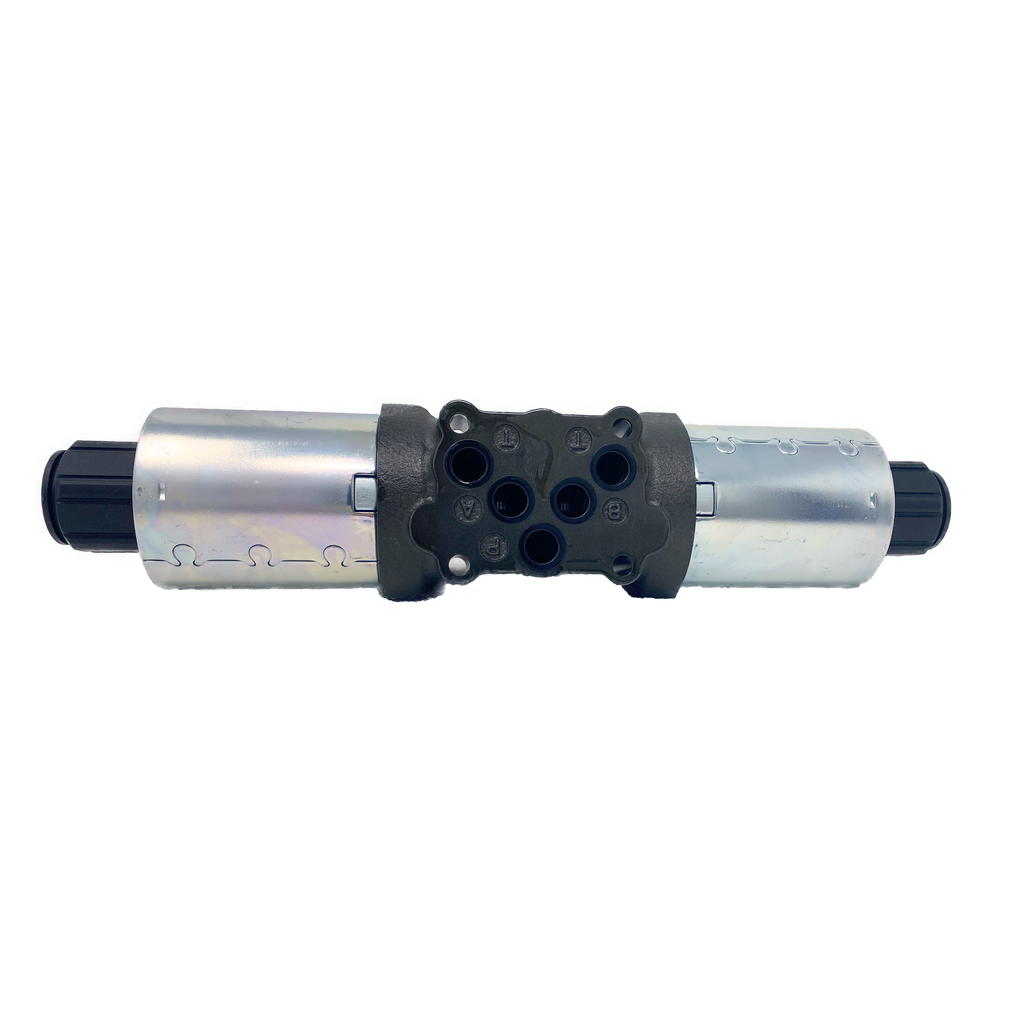 Direct acting, directional control valve with subplate mounting interface acc. to ISO 4401, DIN 24340 (CETOP 03). High transmitted hydraulic power up to 350 bar with optimized design to minimize pressure drop. Five chamber housing design with reduced hydraulic power dependence on fluid viscosity. The valve is available with interchangeable DC solenoids, also for AC power supply using a built-in rectifier bridge. Wide range of solenoid electrical terminal versions, interchangeable spools and manual overrides available. The coil is fastened to the core tube with a retaining nut and can be rotated by 360-degrees to suit the available space. In the standard version, the valve housing is phosphated.