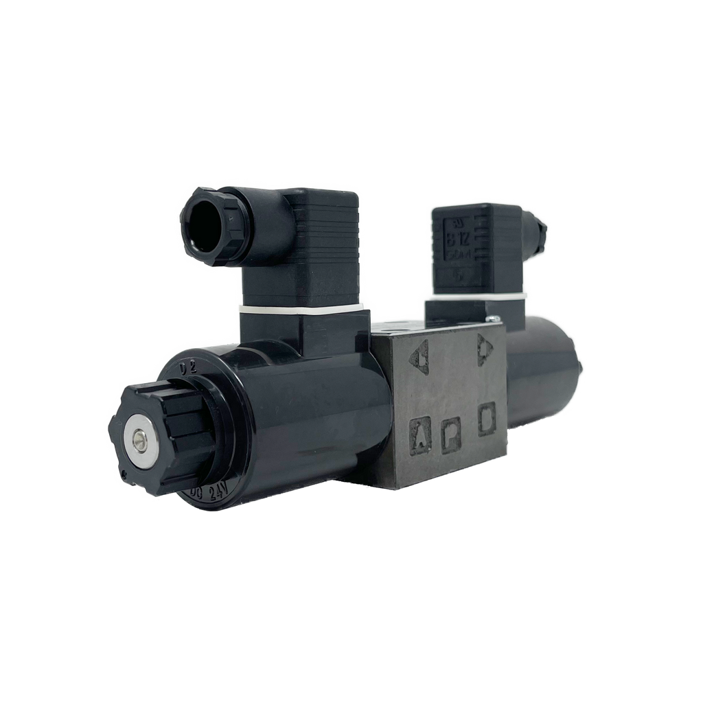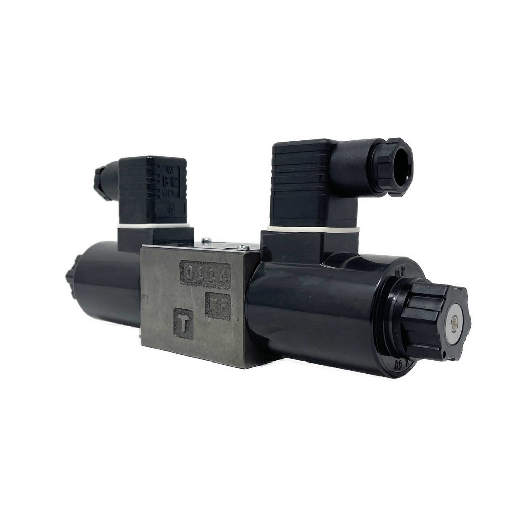The Nachi SA-G01 is a standard 3-Position, 4-Way, Solenoid Operated Directional Valve. The movable iron core of the wet type solenoid is immersed in oil, which keeps it lubricated and cushions it from impact and vibration, ensuring very long life. The wet-type solenoid valve also provides very low core switching noise for quiet operation.