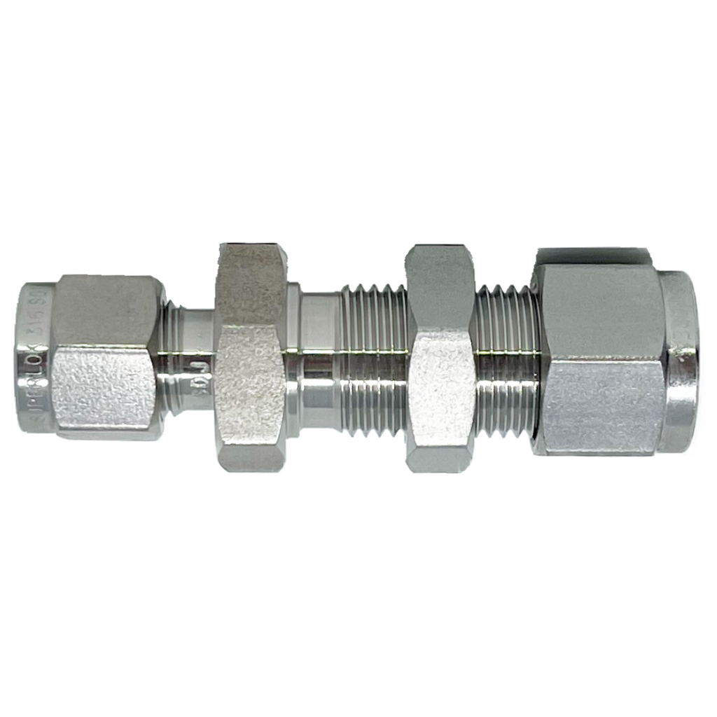 Our Superlok Series SBHRU fractional tube reducing bulkhead unions, made from durable 316 stainless steel, are designed to securely connect two different tubing sizes while mounting tightly to control panels in applications like air quality testing equipment. These reducing bulkhead unions offer a reliable solution for a variety of tubing sizes, including ¼”, 3/8”, ½”, ¾”, and 1”. They provide a robust connection that ensures leak-proof performance in high-pressure systems. With a wide range of sizes available, Superlok's Reducing Bulkhead Unions are ideal for industries requiring precise and secure tubing connections in control panels and other critical systems.
