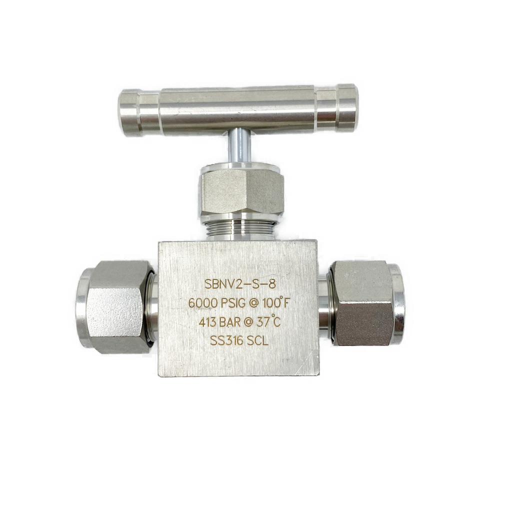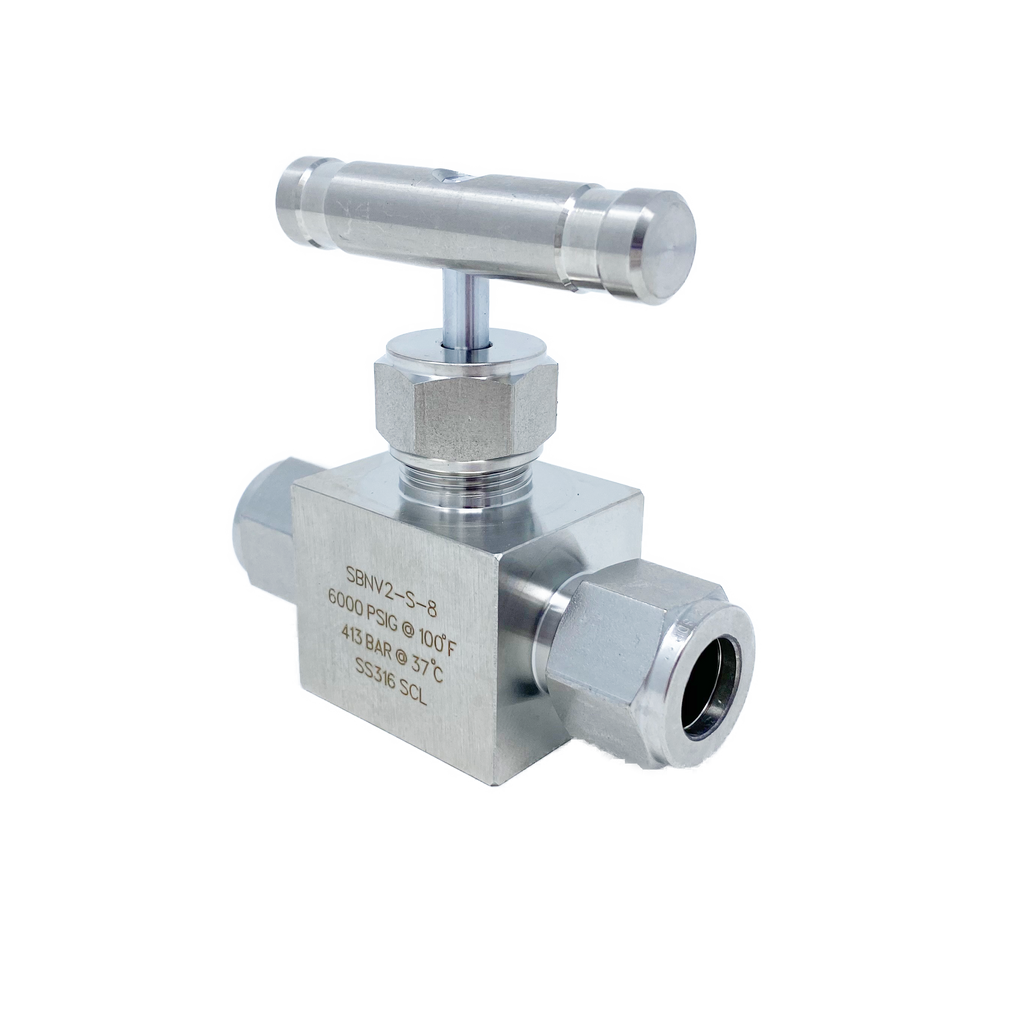The Superlok SBNV Series Integral Bonnet Bar Stock Needle Valves offer a compact design with low operating torque, in a variety of stem tips and end connections. Straight and Angle flow patterns are available. Every valve is factory tested before it arrives at your door.