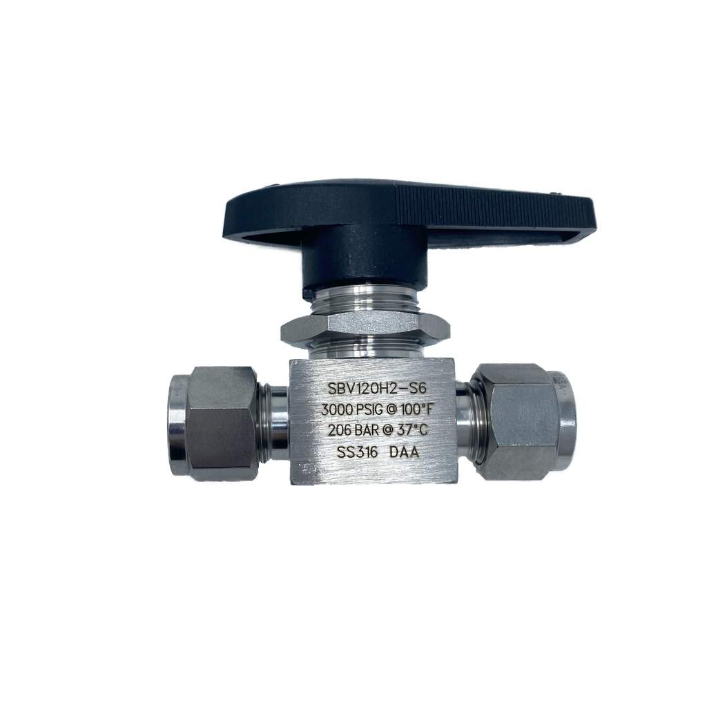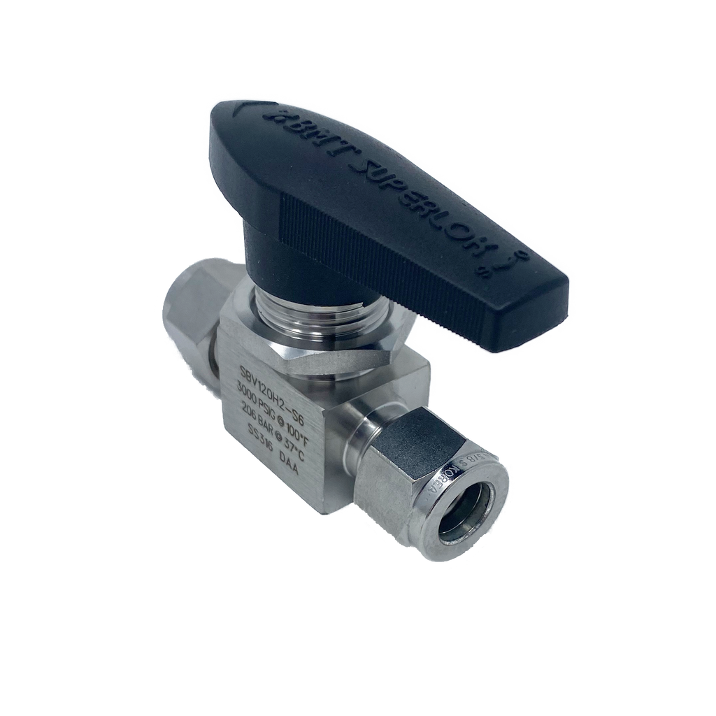 The Superlok SBV120H Series One-Piece valves offer a simple design with a one-piece body, with tight and smooth low-torque operation. These valves have a one-piece ball stem, are panel mountable, and available in a variety of end connections as well as straight, angle, and 3-way flow patterns. Each valve is tested at the factory before it arrives at your door.