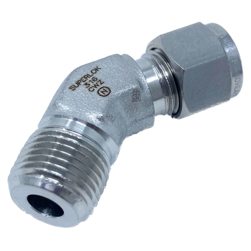 Our Series SHUE 45-Degree Stainless Female Tube OD x Female Tube OD Union Elbows, made from high-quality 316 stainless steel, are versatile and durable fittings designed to provide secure connections in hydraulic and fluid systems. These union elbows feature a 45-degree angle, allowing for efficient tubing routing in tight spaces or systems that require directional changes. The female tube ends provide a reliable connection with other tubes, offering a smooth, leak-free seal when properly installed. Designed for use in demanding environments, these fittings are ideal for applications in industries such as oil and gas, chemical processing, and industrial machinery, ensuring long-lasting performance and flexibility in fluid transfer systems.