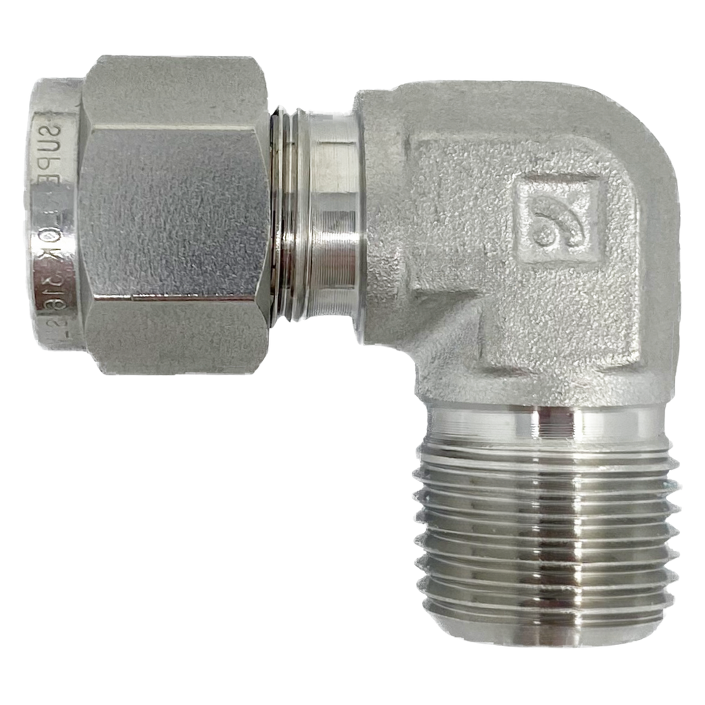 Our Series SME 90-Degree Stainless Female Tube OD x Male NPT Elbows, crafted from durable 316 stainless steel, are designed to provide efficient, secure, and leak-free connections in hydraulic and fluid power systems. These adapters feature a 90-degree angle, which allows for smooth directional changes in tubing while maintaining optimal flow. The female tube OD (Outside Diameter) connection on one side easily connects to a tube, while the male NPT (National Pipe Tapered) thread on the other side provides a reliable, leak-resistant seal through thread deformation. Perfect for high-pressure applications across industries such as oil & gas, chemical processing, and manufacturing, these fittings ensure durability and long-lasting performance even in demanding environments.