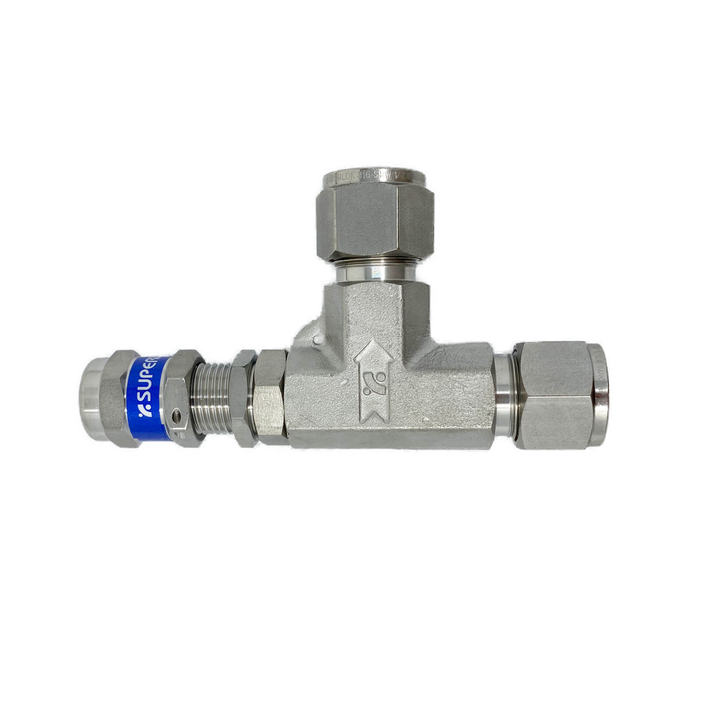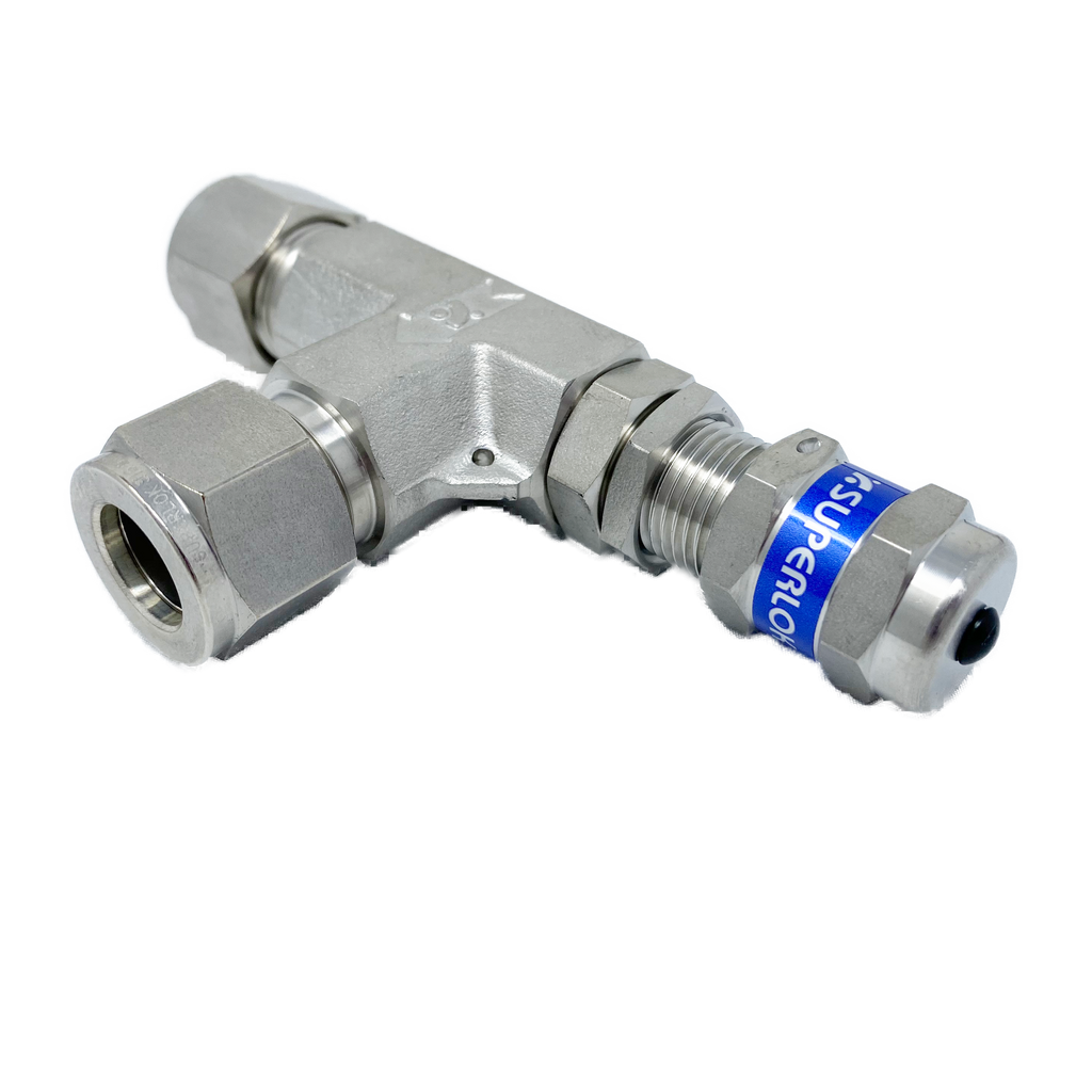 The Superlok SRV Series s offer a compact design and a cracking pressure which can be adjusted externally. The lock wire feature secures a given pressure setting. The Set Pressure of this valve is the upstream pressure at which the first indication of flow occurrs. The set pressure of each valve is repeatable within plus or minus 5 percent at room temperature. Each valve is factory tested before it arrives at your door.