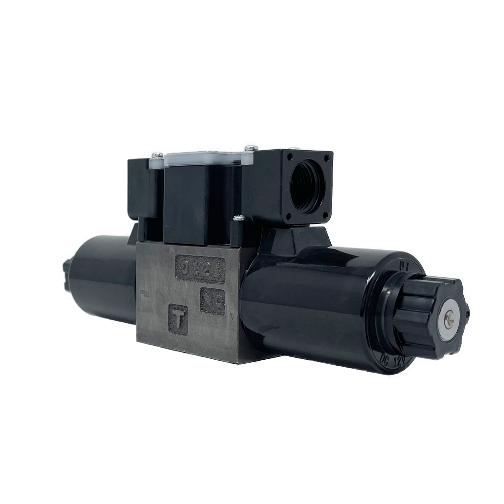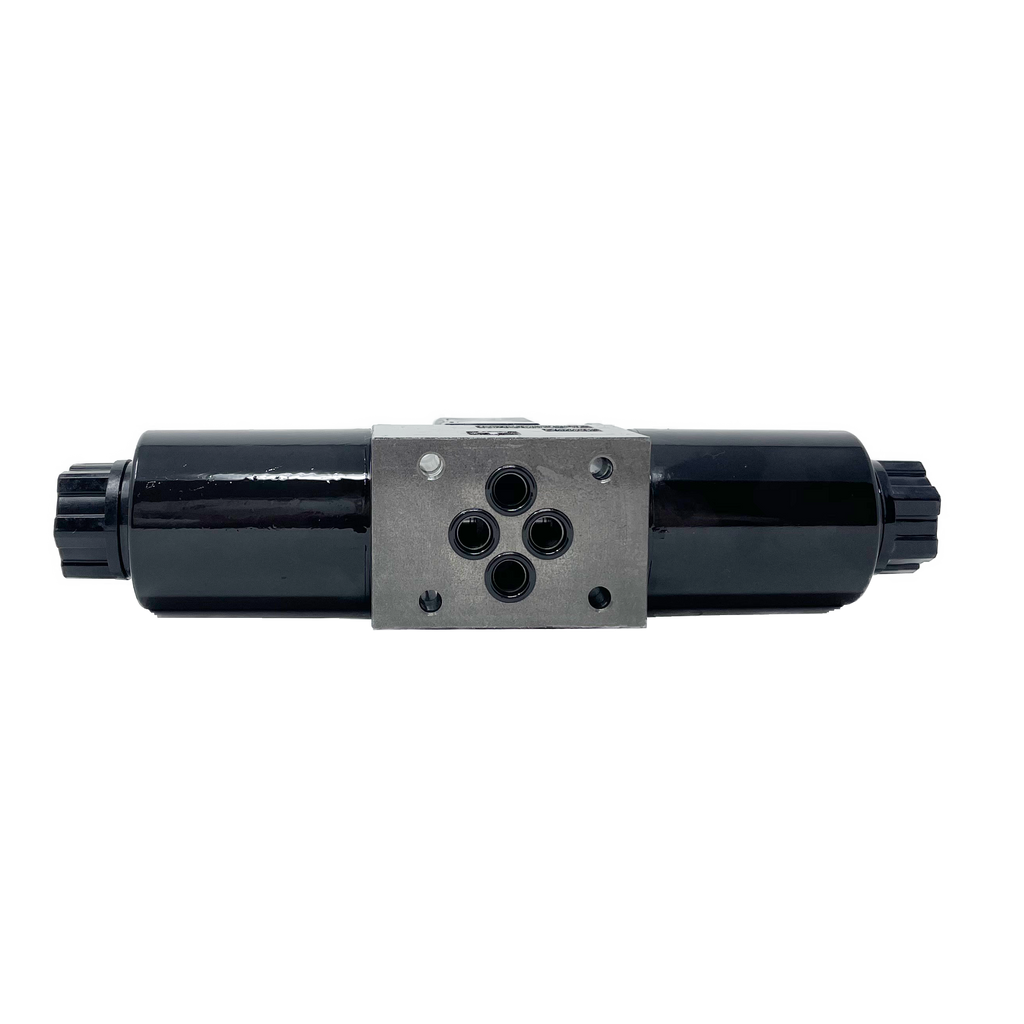 The Nachi SS is a standard 3-Position, 4-Way, Solenoid Operated Directional Valve. The movable iron core of the wet type solenoid is immersed in oil, which keeps it lubricated and cushions it from impact and vibration, ensuring very long life. The wet-type solenoid valve also provides very low core switching noise for quiet operation.