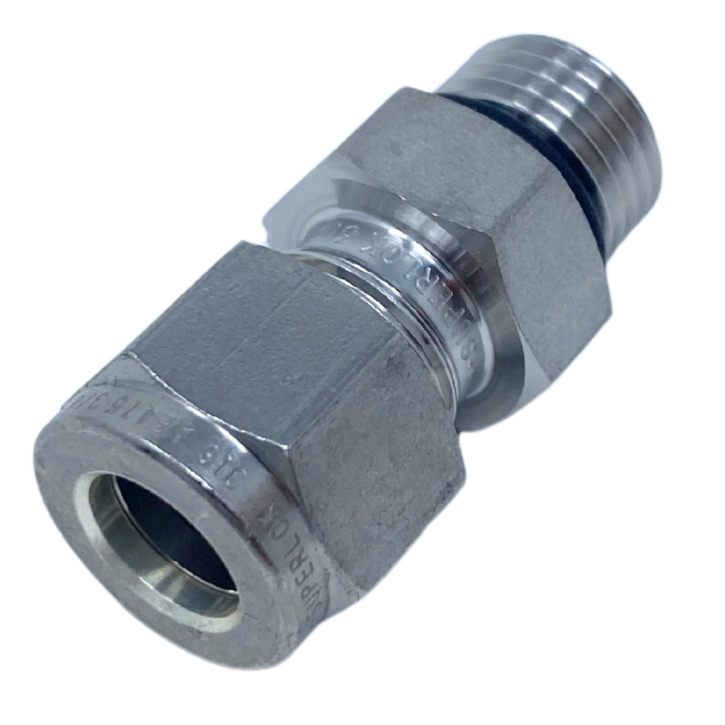 Our Series SSMC Straight Tube x Male ORB Adapters, crafted from durable 316 stainless steel, provide a secure connection between fractional tubing and male ORB (O-Ring Boss) threaded fittings. These adapters are designed for use in hydraulic and fluid power systems where leak-free, high-performance connections are essential. The ORB connection features a straight thread with an O-ring that creates a reliable, metal-to-metal seal, ensuring optimal fluid flow while preventing leakage. The 316 stainless steel construction offers superior corrosion resistance, making it ideal for use in demanding environments such as chemical processing, oil and gas, and high-pressure systems. These adapters are a trusted choice for professionals seeking durable and efficient solutions in various industrial applications.
