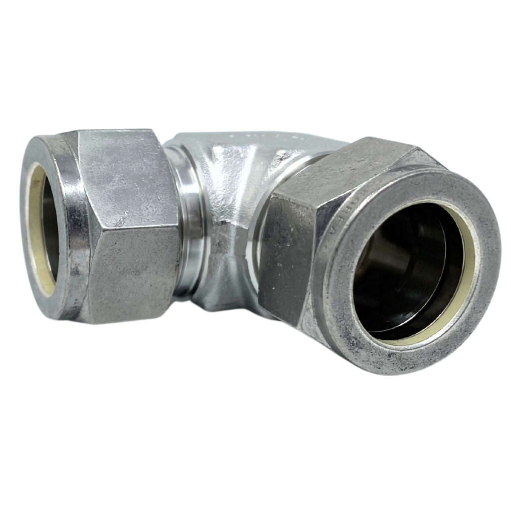 Our Series SUE 90-Degree Stainless Female Tube OD x Female Tube OD Union Elbows, crafted from durable 316 stainless steel, are high-performance fittings designed for fluid and gas transfer systems that require a 90-degree angle for efficient tube routing. These union elbows feature female tube ends on both sides, allowing for easy connection with other tube fittings. The 90-degree design enables smooth, leak-free directional changes in tight spaces or complex systems. Ideal for use in industries such as chemical processing, oil and gas, and general industrial applications, these fittings ensure long-lasting reliability and performance, providing secure and effective connections in high-pressure environments.