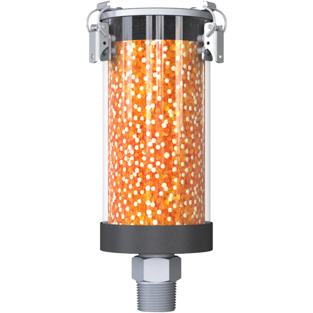 The Series VV-R Desiccant Breather Dryer is a refillable moisture protection solution designed for hydraulics, gears, barrels, IBCs, and mobile machinery in both indoor and outdoor environments. This dryer ensures constant air exchange with minimal downtime, safeguarding equipment against moisture damage. Its durable plastic housing is filled with GIEBEL Xdry desiccant and includes a 3μm filter for efficient air drying and cleaning. An activated carbon layer adsorbs oil mist to protect the desiccant and environment from contamination. When the desiccant reaches saturation, the inner components can be replaced at a low cost, making the system cost-effective and easy to maintain. The refillable design reduces waste while providing long-lasting, reliable protection.