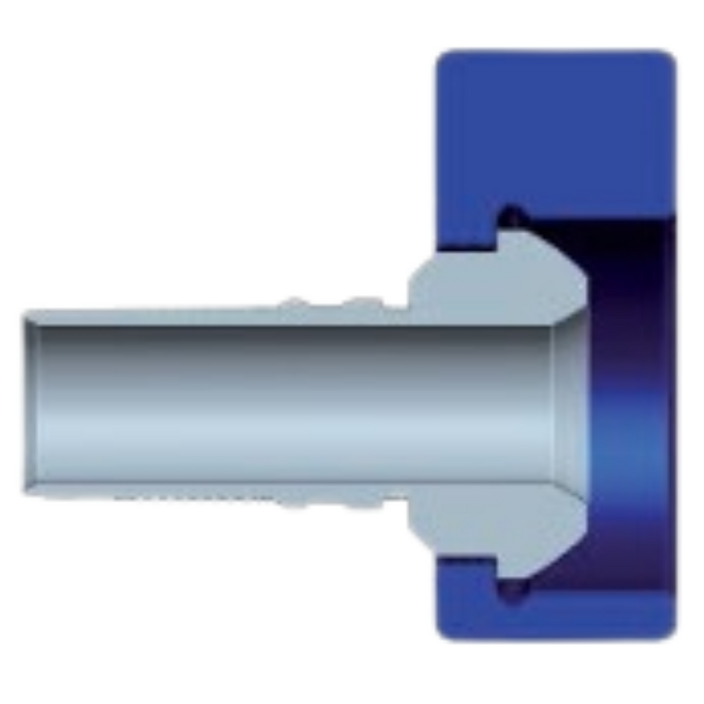 The Alfagomma Z-MHUN Two-Piece Fittings are straight, carbon steel hose end fittings designed for use with Male Hammer Union Fig. 1502, featuring an integral fitting with a lug nut. These fittings are specifically used with Alfabiotech 6000 and 10K cementing hoses, typically in high-pressure applications like those found in oil and gas operations. A ferrule is a small metal ring used to secure the hose to the fitting, ensuring a leak-free, durable connection. Two-piece fittings, such as these, are made up of two separate parts that interlock for easy maintenance or replacement, unlike one-piece fittings that are permanently assembled. The Z Series fittings are designed with a two-piece interlock insert, which requires both internal and external skiving to fit securely into the hose. The proper ZF1 Interlock ferrule is necessary for optimal performance, ensuring that the fitting provides a reliable, high-strength seal in demanding environments.